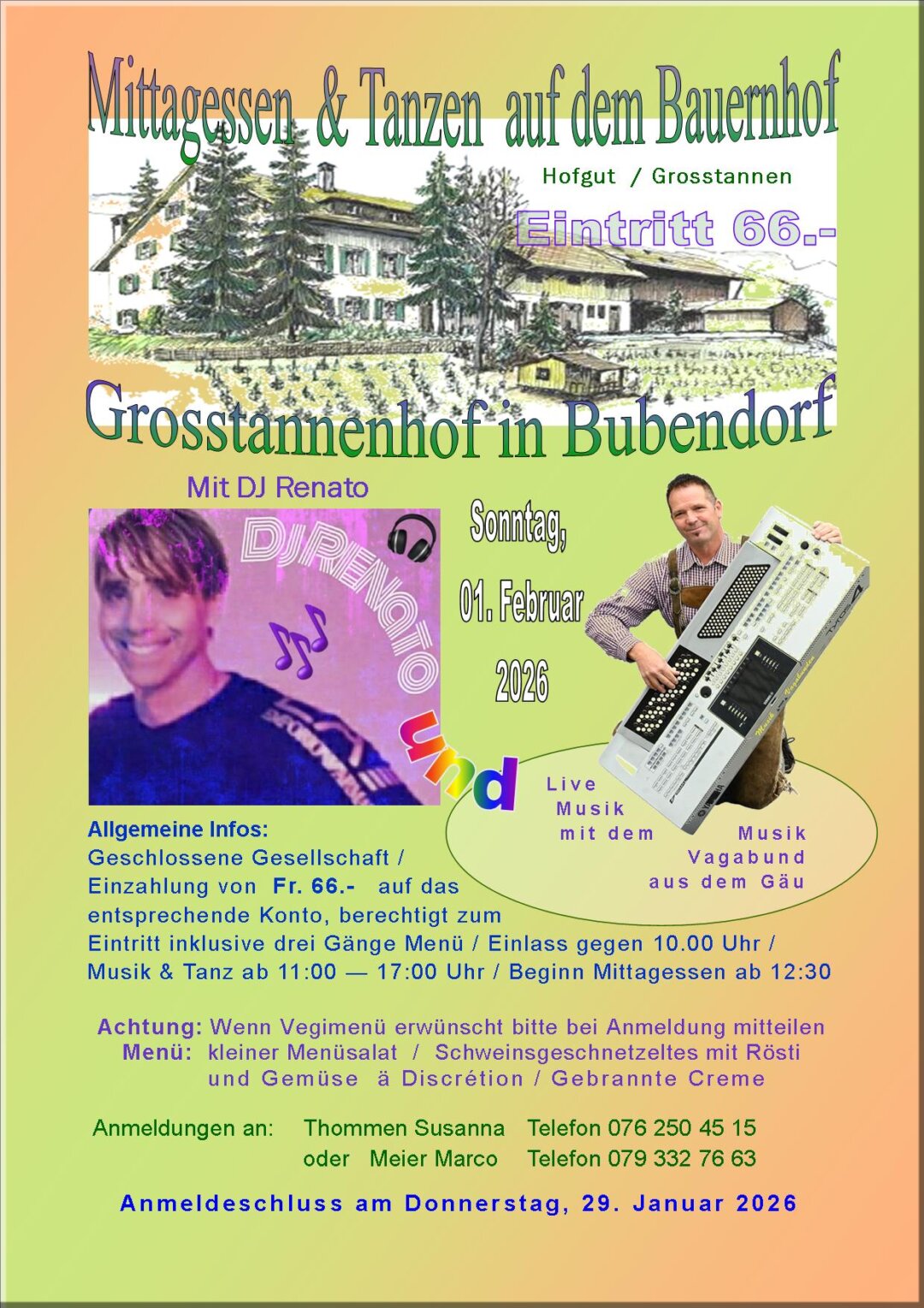 Mittagessen & Tanzen, Sonntag, 01. Februar 2026