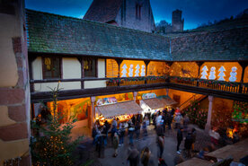 Das Landschaftsgebiet von Ribeauville, in dem es einige der schönsten befestigten Weindörfer des Elsass gibt, zeigt sich jedes Jahr zur Weihnachtszeit in seinem schönsten Festtagsgewand und schmückt sich mit mehrfarbigen Dekorationen, feenhaften Tannen und zauberhaften Festbeleuchtungen. Geniessen Sie Gaumenfreuden und lassen Sie sich auf die Duftwolken von "Bredalas" (traditionelle elsässische Weihnachtsplätzchen) Zimt, Orangen, Gewürzen und Glühwein, welche die Atmosphäre der Strassen dieser elsässischen Dörfer mit Wohlgeruch erfüllen, entführen.
